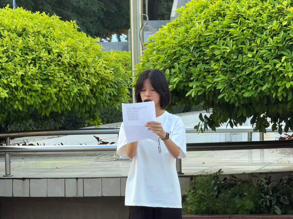 仪式在晨光中拉开序幕,全体师生肃立,注视着五星红旗冉冉升起,心中涌动着对祖国的无限热爱与崇敬。随后,新生代表数学(师)25-4麦淑慧领读了《青年召唤》,铿锵有力的誓言回荡在校园上空,表达了理学院新生作为红色基因传承者、盛世奋进者的坚定信念与使命担当。