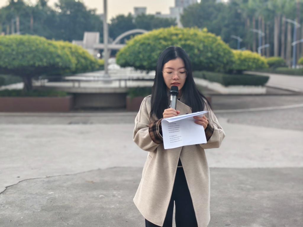 随后,周洁容结合公祭日精神内涵,向全体师生开展爱国主义教育宣讲。她指出,公祭日是缅怀先烈、铭记历史的重要时刻,更是凝聚民族力量、指引青年前行的精神坐标。作为新时代青年学子,既要铭记历史伤痛,珍惜当下来之不易的和平生活,更要将先烈们的奋斗精神转化为求学求知、报效祖国的动力,以扎实的学识、坚定的信念肩负起民族复兴的时代重任。