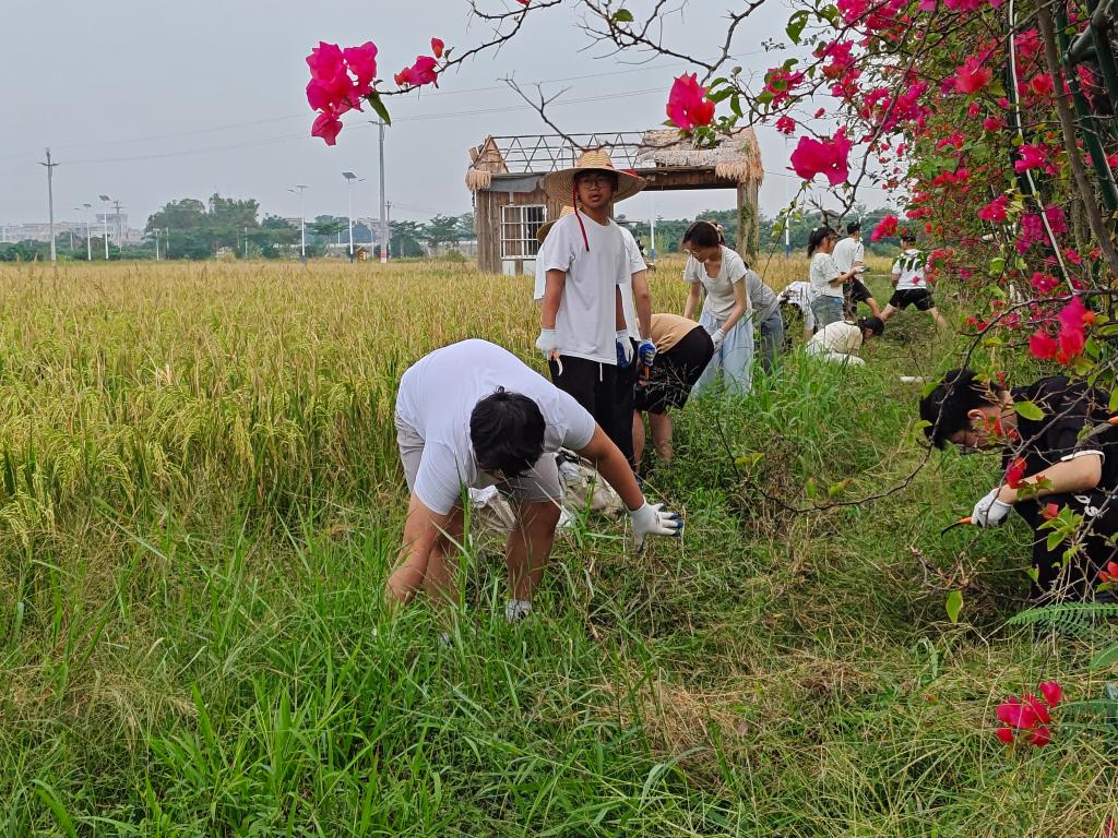 金秋十月,硕果初绽,茂名市羊角镇潭段村的田间地头一派生机勃勃的景象。沉甸甸的作物长势喜人,但随之滋生的杂草也影响着作物的正常生长,及时除草成为田间管理的关键任务。活动伊始,基地工作人员结合田间实际情况,向同学们详细讲解了杂草的辨别方法、除草技巧以及农耕劳作的注意事项,着重强调了劳作过程中的安全防护要点。同学们认真聆听、仔细记录,随后迅速佩戴好提前准备的帽子、手套等防护用具,在老师的统筹安排下分成多个劳作小组,有条不紊地走进田间开展除草作业。