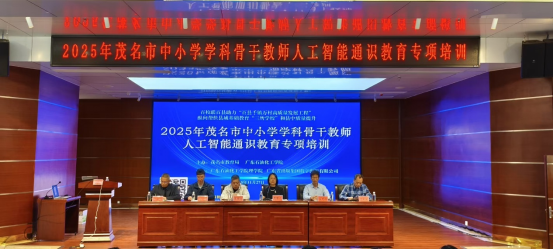 为深入贯彻落实国家教育数字化战略行动,推动人工智能与教育深度融合,助力纵向帮扶茂名“三所学校”及县域高中教育质量整体提升,2025年11月27日,由茂名市教育局与广东石油化工学院理学院联合举办的“茂名市中小学学科骨干教师人工智能通识教育专项培训”在茂名市教育局副楼二楼报告厅顺利举行。全市约1100名中小学学科骨干教师通过线上直播与线下参会相结合的方式参加培训。