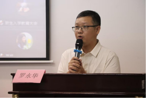 随后,院长罗永华教授发表致辞。他围绕经济管理学院的办学历史、专业特色、师资力量、教学资源及人才培养成果深入阐述,使新生直观体悟到学院“有实力、有温度、有未来” 的深厚办学底蕴。同时,罗永华院长向新生寄予殷切期望,勉励大家以 “经世济民” 为志向,在大学四年间勤学笃行、全面发展,将专业所学与时代需求、国家战略深度融合,为未来长远发展夯实根基。