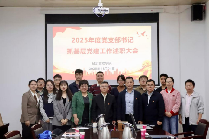 11月4日,经济管理学院2025年度党支部书记抓基层党建工作述职大会在官渡校区综合楼一楼会议室召开。学院党委书记温云峰、院长罗永华、副院长朱炎亮、党委副书记陈玲、党委委员张大为及各党支部书记(代表)参加会议。会议由温云峰书记主持。