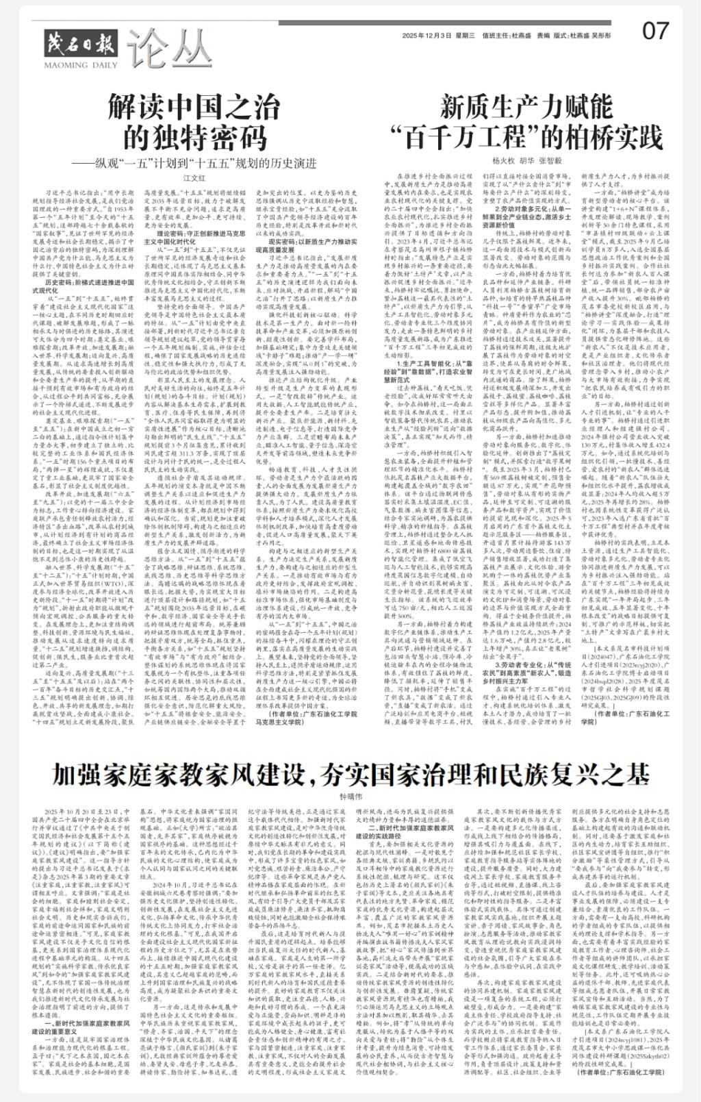【茂名日报】解读中国之治的独特密码纵观“一五”计划到“十五五”规划的历史演进