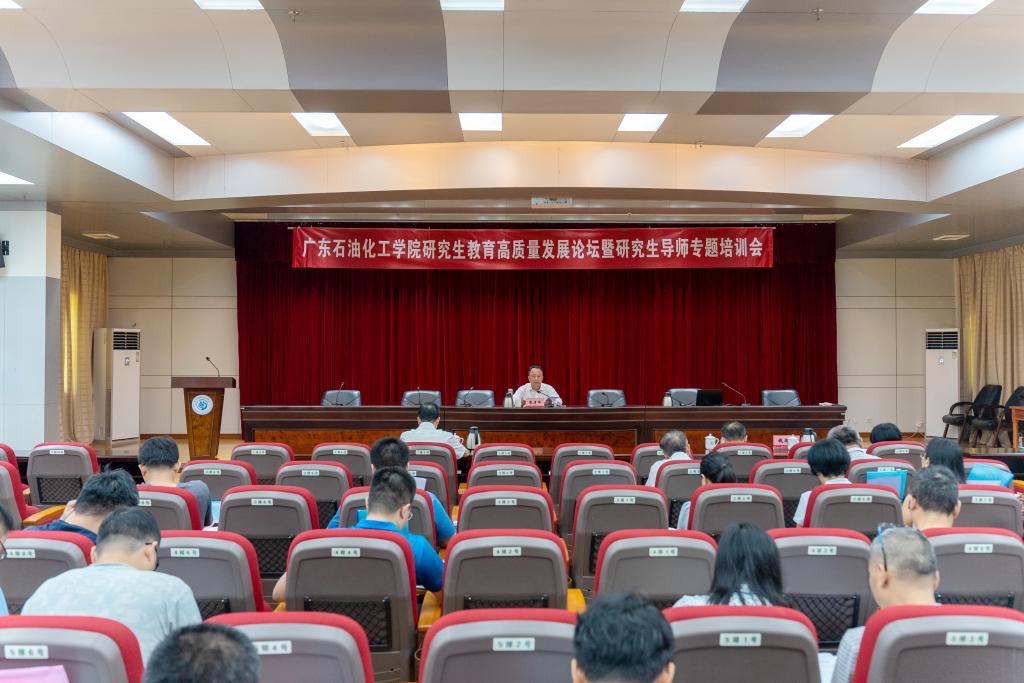 7月8日,广东石油化工学院在图书馆学术报告一厅举行新时代研究生教育高质量发展论坛暨研究生导师专题培训会。学校党委书记、校长张清华,党委常委、副校长周如金,全体硕士研究生导师、各研究生培养学院分管研究生教育工作负责人、研究生秘书及发展规划部(研究生部)全体人员参加会议。华工帮扶队队长朱永东主持会议。
