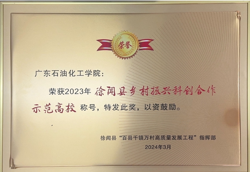 学校获2023年“徐闻县乡村振兴科创合作示范高校”称号