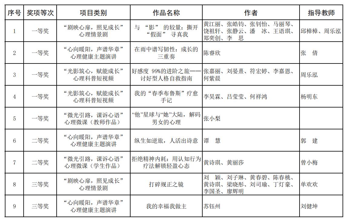 2025年广东省“5・25”大学生心理健康月系列活动获奖汇总