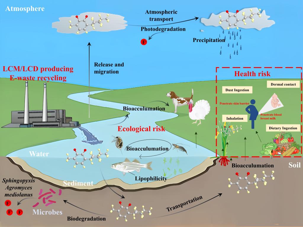 氟化液晶单体(FLCMs)是广泛应用于液晶显示器的一类新污染物。随着全球电子设备更新换代,FLCMs被不断释放到环境中,对生态系统和人类健康构成潜在威胁,近年来引发全球广泛关注。本综述系统梳理了关于FLCMs的现有知识,重点聚焦于其物理化学性质、环境分布、人体暴露、转化行为及消除技术。研究发现,尽管计算预测显示大多数已知的FLCMs具有持久性和生物累积性,但实验测量值与预测值之间存在显著差异,尤其在土壤和水体中的持久性数据匮乏。部分FLCMs表现出大气持久性、生物累积潜力以及多种毒性(如急性毒性、肝毒性、内分泌干扰效应等)。本文提出了12种需要优先关注的FLCMs清单。研究发现,膳食摄入是普通人群暴露FLCMs的主要途径,婴幼儿通过母乳或配方奶粉的暴露水平高于成人。电子废物拆解工人,通过灰尘摄入等途径的暴露水平显著更高,存在职业暴露风险。FLCMs可发生光转化和生物转化,可能产生具有相当或更高毒性的转化产物。目前关于FLCMs的消除技术研究仍很有限,开发高效、环境友好的修复技术至关重要。本综述强调了氟化液晶单体作为一类潜在持久性有机污染物的环境关注必要性,为后续相关研究、环境管理和风险防控提供了重要的科学依据和方向指引。