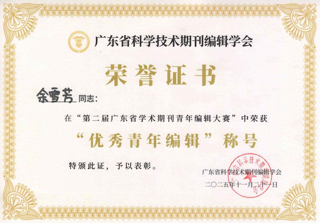 余雪芳撰写的论文荣获广东省科技期刊优秀论著奖