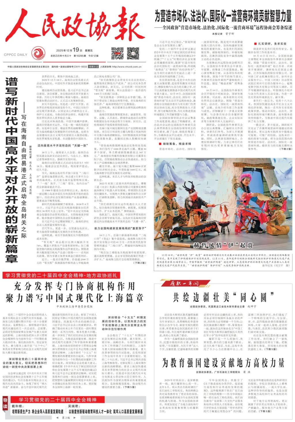 2025年12月19日,《人民政协报》头版刊发全国政协委员、广东石油化工学院校长梁浩教授署名文章《为教育强国建设贡献地方高校力量》,文章重点阐述了其在全国两会上提出的《关于推进高校分类评价,促进地方高校和行业类高校发展的提案》的形成背景、核心思路与实际成效,并结合广油的办学实践,深入展现了地方高校在教育强国建设中的使命担当和改革路径。全文内容如下:
