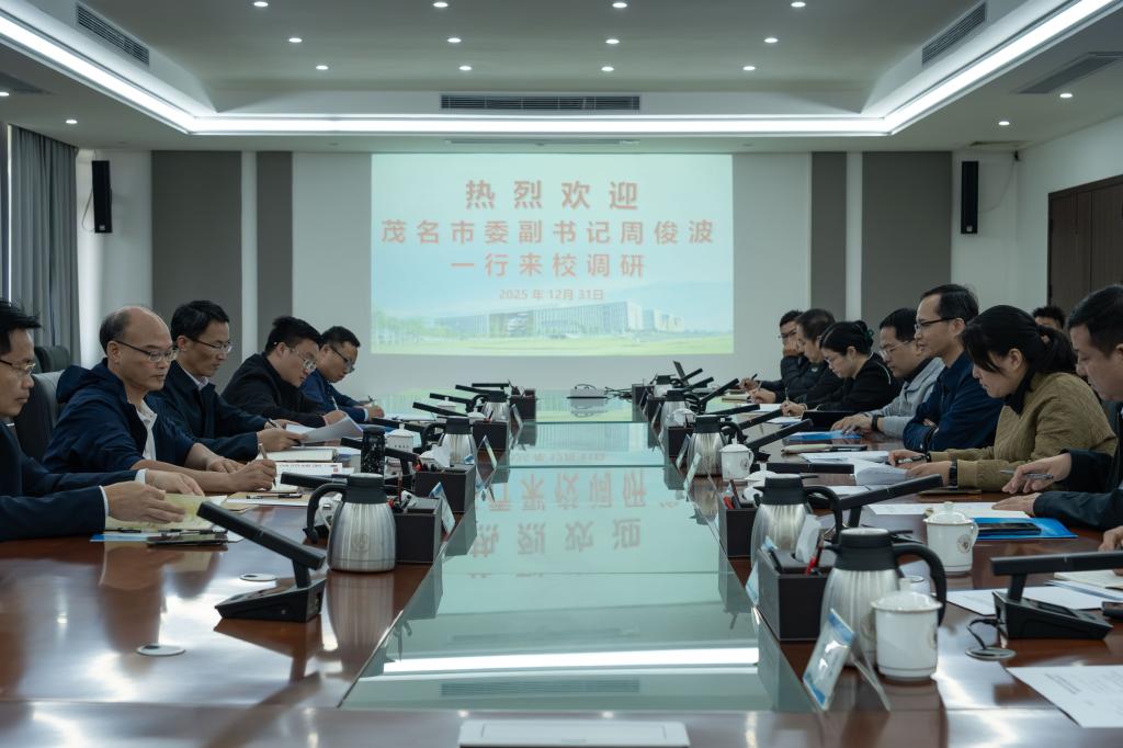 周俊波充分肯定了学校立足专业、发挥优势所取得的扎实成效。他指出,茂名区域发展需要学校的智力与人才支持,希望双方能继续深化合作对接,找准落脚点,推动更多合作项目落地见效,实现共赢。