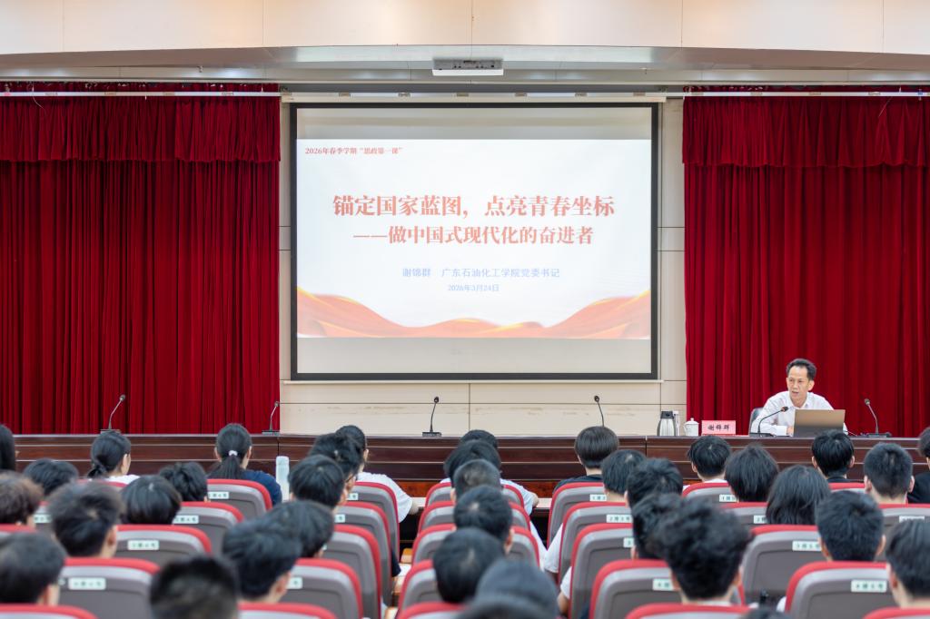 3月24日,学校党委书记谢锦群以《锚定国家蓝图,点亮青春坐标——做中国式现代化的奋进者》为题,在图书馆报告一厅为人工智能专业23-3、23-4班全体学生讲授2026年春季学期“思政第一课”。