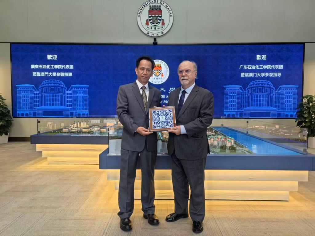 在澳门科技大学,谢锦群应邀出席了该校建校26周年校庆系列活动。期间,谢锦群与澳门科技大学副校长庞川座谈交流,参观调研了该校中药机制与质量全国重点实验室、月球与行星科学全国重点实验室、图书馆。谢锦群代表学校对澳门科技大学建校26周年致以热烈祝贺,并介绍了广油推动“申博改大”、建设高水平理工科大学的建设发展情况。他希望两校发挥各自优势,在学科建设、科研合作、师生交流等领域深化合作,携手共进。庞川表示,澳门科技大学珍视与广东石油化工学院的友谊,希望进一步加强交流,并在学科建设、科学研究、人才培养等方面深化合作,共创美好未来。