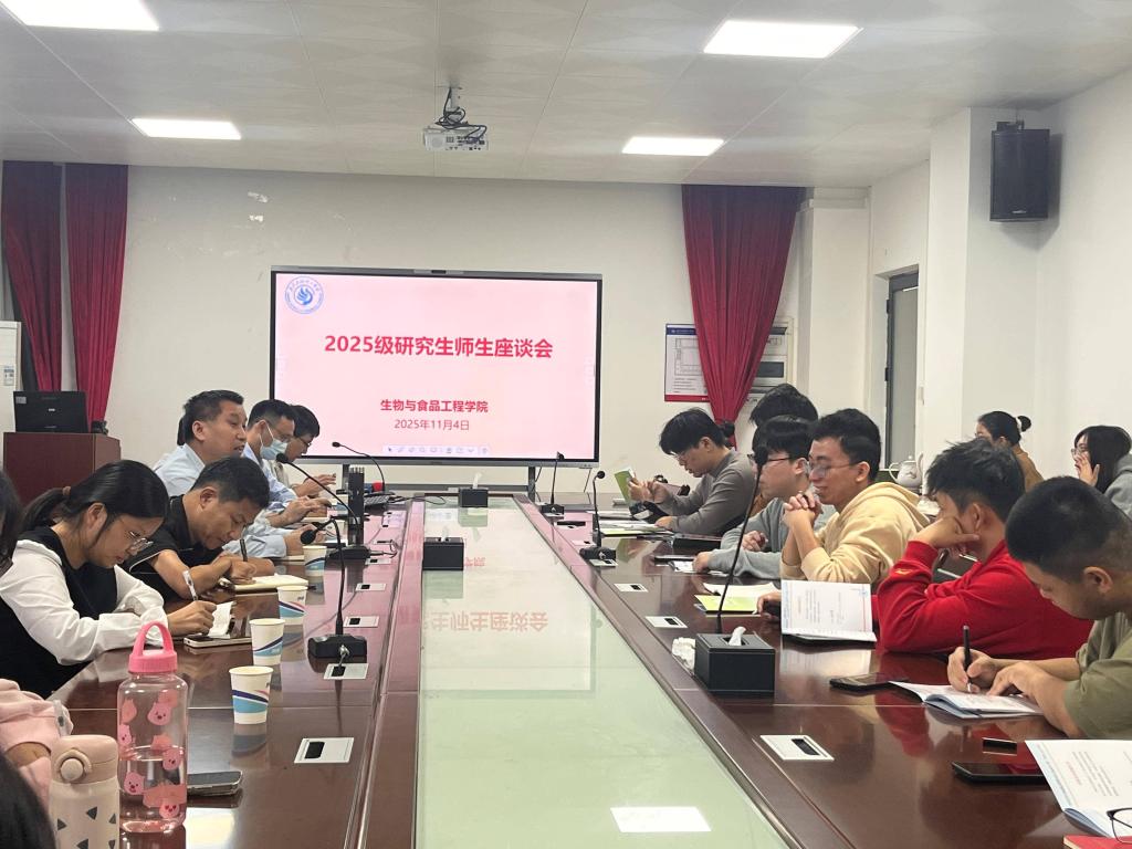 为进一步加强研究生教育质量监控,规范研究生教学管理,提高研究生教学水平,促进研究生教学质量。11月4日,生物与食品工程学院组织召开2025-2026年第一学期研究生期中教学师生座谈会。学校研究生教学督导组成员、食品与营养学位点负责人张强教授出席会议,学院党委副书记刘仰智,生物工程系主任、生医研25-1班主任岳茂峰教授,生物工程系副主任沈超博士与教师代表陈莹珊博士、李树芳博士和2025级全体研究生参加会议。会议由学院副院长马超主持。