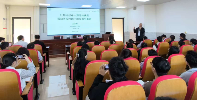 2025年12月18日上午,主题为“牡蛎中人源诺如病毒蛋白类吸附因子的发掘与鉴定”的学术报告,在生物与食品工程学院学术报告厅举行。本次报告由上海交通大学王大鹏研究员主讲,学院党委书记韦明肯、副院长张玲及师生代表共50余人参会,共同见证了食源性病毒研究领域的重要成果分享。