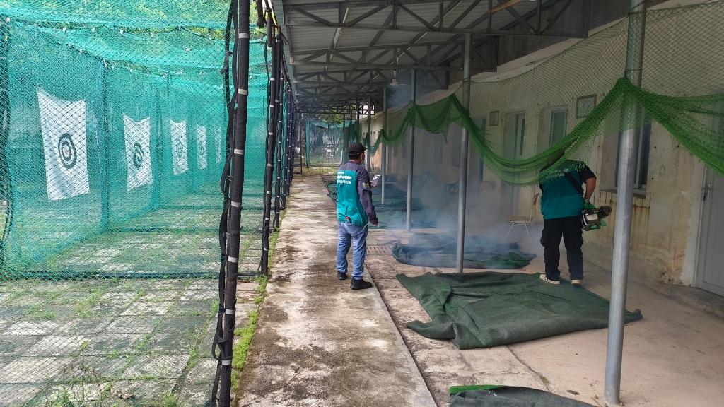 9月2日,体育学院协同总务后勤部请除四害专业人员,对体育场馆、运动场地进行全面的消杀灭蚊灭虫。官渡校区田径场草地、西城校区体育馆内消杀了红火蚁巢穴、白蚁巢穴数个,并放置防蛇药和鼠药,消杀达到预期效果。