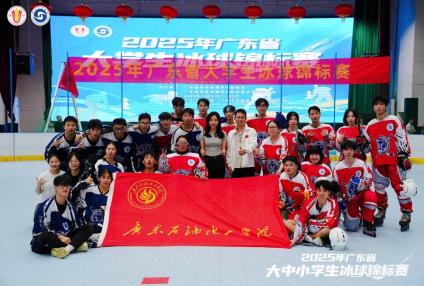 11月1日-2日,由广东省教育厅主办的2025年广东省大学生冰球锦标赛在广州工商学院举行。在教练黄盛良老师带领下,我校组成两支队伍参加比赛,在赛场上表现出了广油人的团结互助、勇往直前的优秀品质,最终分别获得了亚军和季军佳绩,再次为广油轮滑增光添彩。