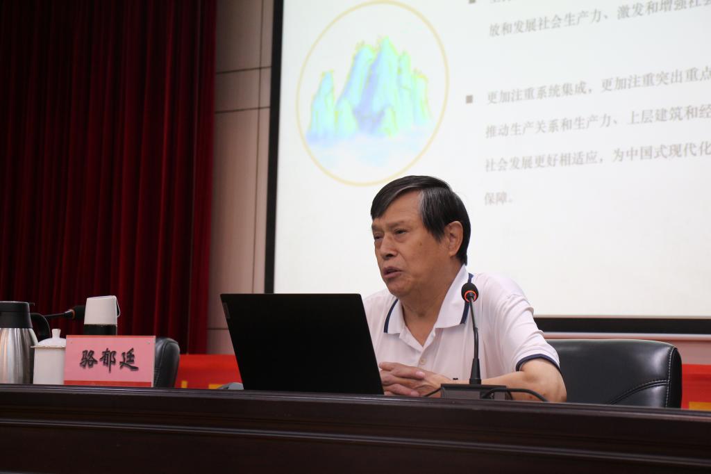 武汉大学原党委副书记、中央马克思主义理论研究和建设工程首席专家骆郁廷教授做报告。他指出,大力发展现代生产力是推进中国式现代化的根本任务,是人民中心、人民至上的内在要求,是实现经济高质量发展的核心要义,是构建全面创新支持体制的关键。