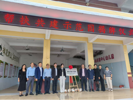 12月2日下午,广东石油化工学院、珠海市启雅幼教集团在化州市丽岗镇中心幼儿园结对帮扶揭牌仪式在化州市丽岗镇中心幼儿园顺利举行。珠海市教育局局长习恩民、化州市委副书记傅婕丹,学校“双百行动”驻化州市服务队队长冯耀勇,珠海启雅幼教集团总园长雷宇等出席了活动。