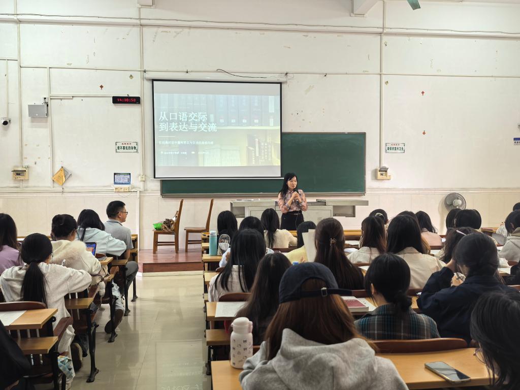 为深入贯彻《义务教育语文课程标准(2022年版)》,切实提升师范生口语交际教学能力。2025年12月29日下午,汉语言文学(师范)专业《中学语文课程与教学论》课堂迎来了一场别开生面的教学实践。茂名市育才学校刘粤霞副校长应邀为2023级师范生带来“中学语文口语交际”章节的精彩教学。本次活动紧扣新课标理念,聚焦口语教学由传统“技能训练”向“核心素养培育”的深刻转型。刘粤霞副校长凭借丰富的教学管理经验和深厚的语文教学功底,从文化根基与沟通智慧、课标解析与理念更新、跨学科实践与任务驱动、教师角色转型、未来教师素养锻造等五个维度系统构建了“口语交际到表达与交流”的教学实践路径。