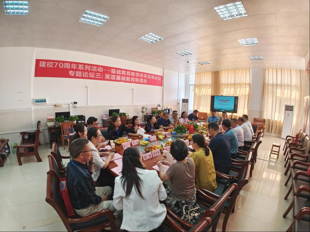 11月2日上午,广东石油化工学院官渡校区二教A805教室里,一场聚焦“英语基础教育新课改”的分论坛热烈举行,作为学校70周年校庆系列学术活动的重要组成部分,分论坛吸引了优秀校友、教师代表及在读学生代表40多人前来参加,陈华伟副院长主持了论坛。