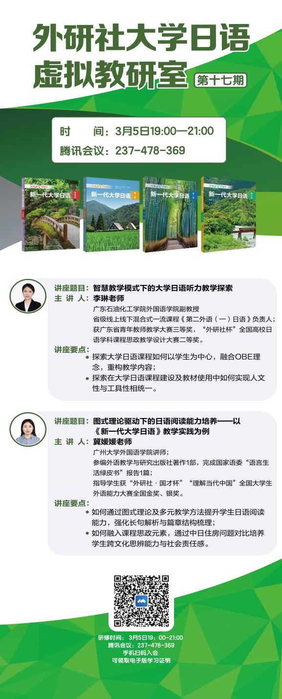 3月5日,由外语教学与研究出版社主办的“大学日语虚拟教研室”教研活动在云端举行,我校外国语学院日语教师李琳应邀做了题为《智慧教学模式下大学日语听力教学探索》的报告,本次教研活动面向全国高校日语教师举行,参加人数约1000人。