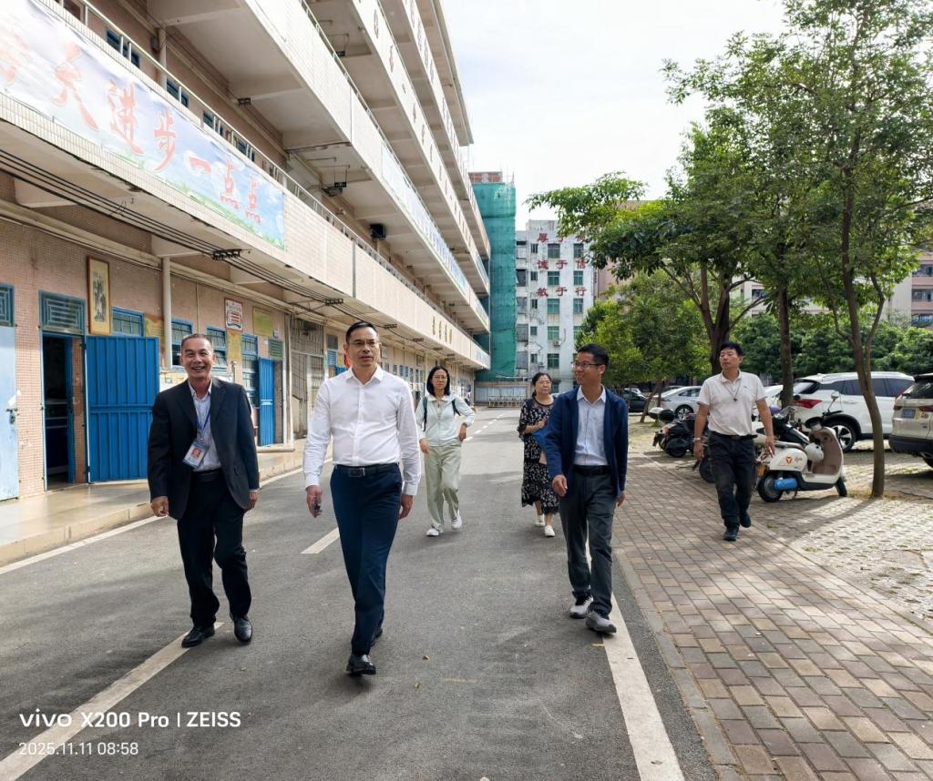 作为电白六中校友,黎育生书记在校园参观中感慨母校发展变迁,与李东升校长深入交流校园文化建设与办学特色。交流会上,黎育生书记介绍了学校学院的历史与现状,阐明了前往观珠开展帮扶活动的初心使命,观珠各有关学校负责人分别介绍了本校发展历史现状、办学优点、难点与痛点。在听取有关汇报后,会议研究敲定了“九项帮扶举措”:组建专业团队筑牢心理防线、开展大学校园研学之旅、建立实习基地补给师资,举办 AI 赋能培训提升教法,通过“同课异构”碰撞教学智慧、以精品主题思政课为抓手推进大中小学思政教育一体化建设、挖掘本土文化,厚植校园精神和开展外教进校园激发英语兴趣和举办新中考、新课程、新课标专题培训。