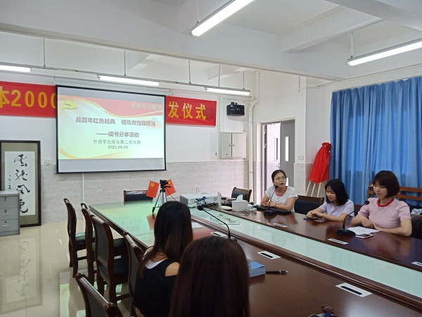 4月20日下午,外语学生综合第二党支部在外语楼404进行了以“品百年红色经典,锤炼党性强担当”为主题的读书分享活动。参与此次活动的有全体支部学生党员、积极分子,党支部书记饶苗苗老师。