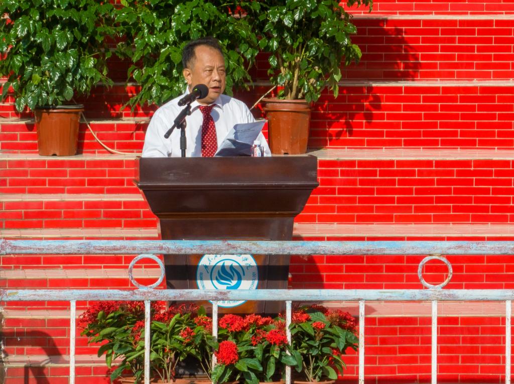 教师代表王素华教授代表学校全体教师向各位同学表态:广东石油化工学院全体教师将一直陪伴在同学们身边,有责任激励和启迪你们、督促你们,真诚地关爱每一位学生,做良师益友,携手迈向未来,为追求知识和真理努力奋斗。同时,希望每一位同学都为自己的大学定下一个目标,尽一切努力去实现它;尽心地去做好自己的每一件事,每一个人都学有所成。