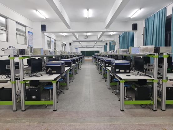 实验室使用面积约175m2,拥有浙江高联的CSY-XS-03多功能数据实时采集系统实验箱、数字存储示波器(GPS-3303C系列)、任意波形信号发生器(AFC-2225系列)80套,电脑81台,可供80人同时进行实训。